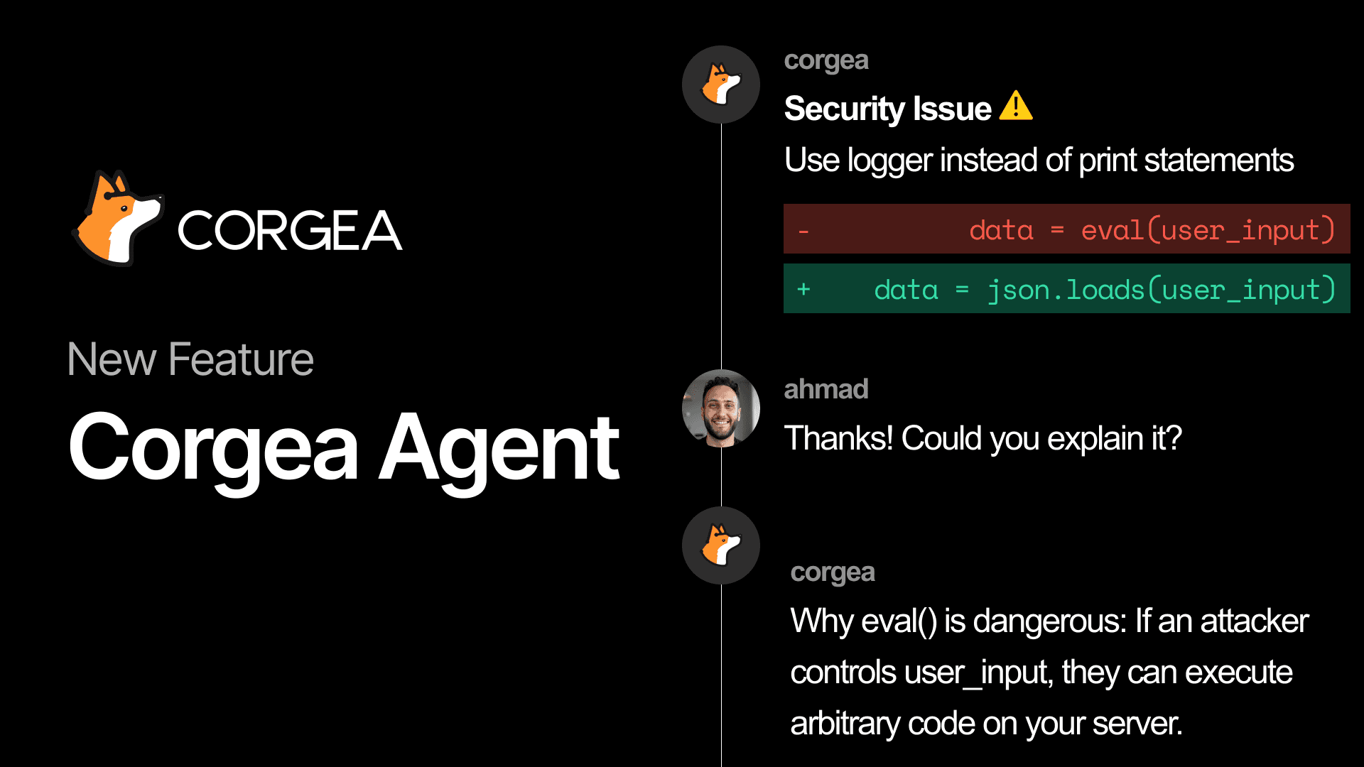 Corgea Agent brings security into pull requests so developers can triage findings without leaving their workflow. Security teams get auditable feedback history and insights in t...