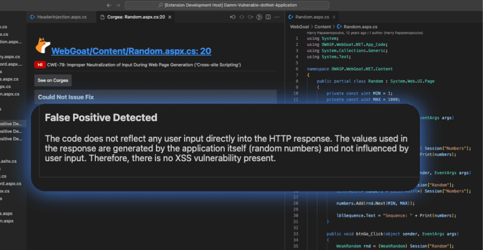 What sets Corgea’s Advanced False Positive Detection apart is its use of AI to understand the context of the code: