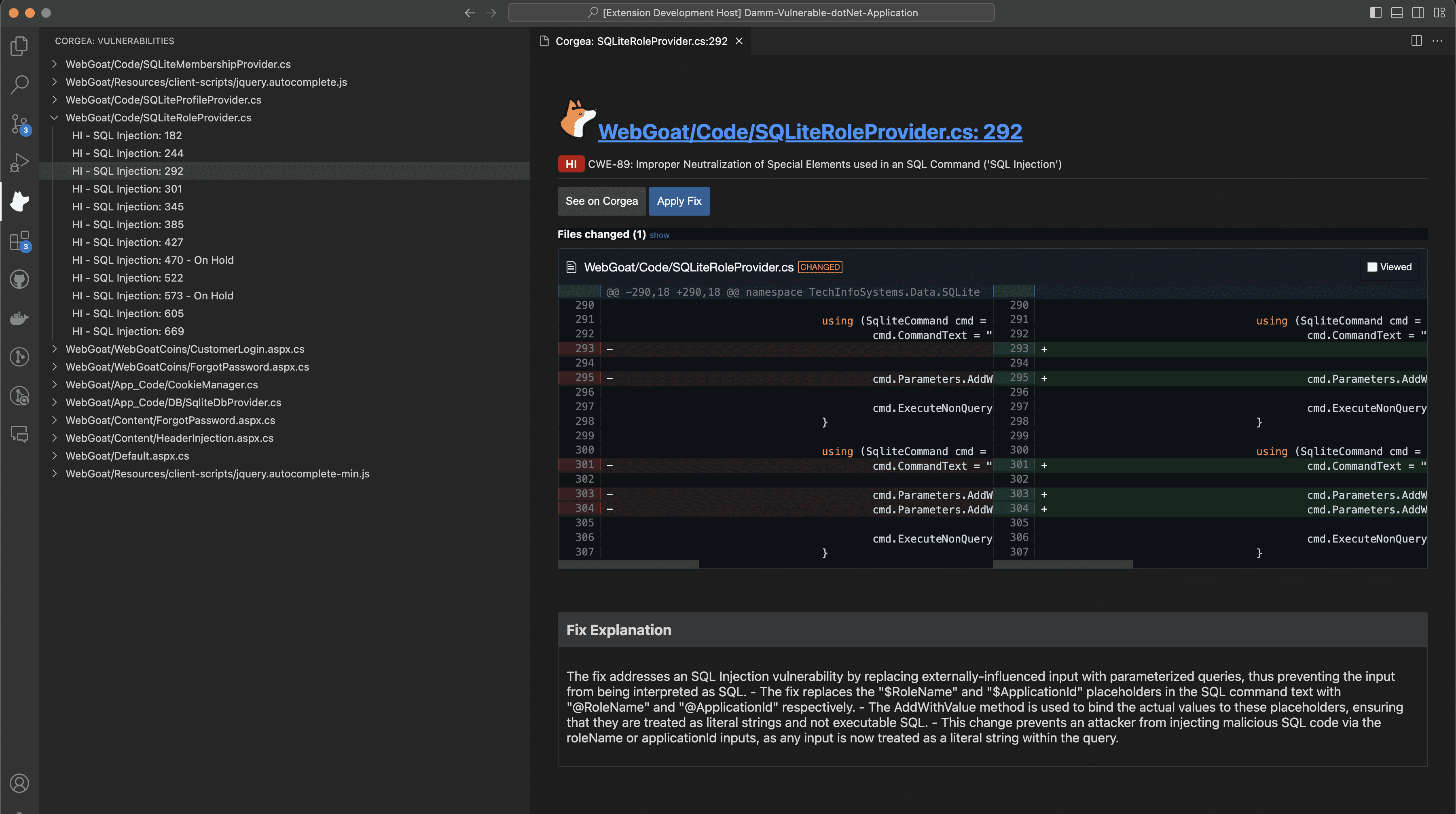To experience the benefits of Corgea’s AI-Generated Fixes in Visual Studio Code, we invite you to register for Corgea at corgea.app. Once registered, you can download the IDE extension from the Visual Studio Marketplace. Start securing your code with intelligent, context-aware fixes today.