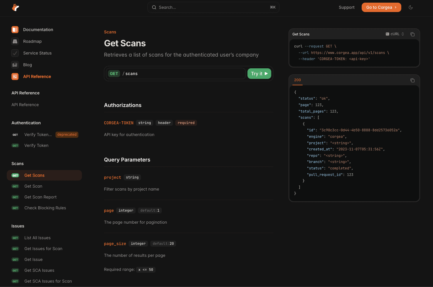 The Extended APIs are now live and ready for integration. Start building more secure applications with programmatic access to Corgea’s security platform.