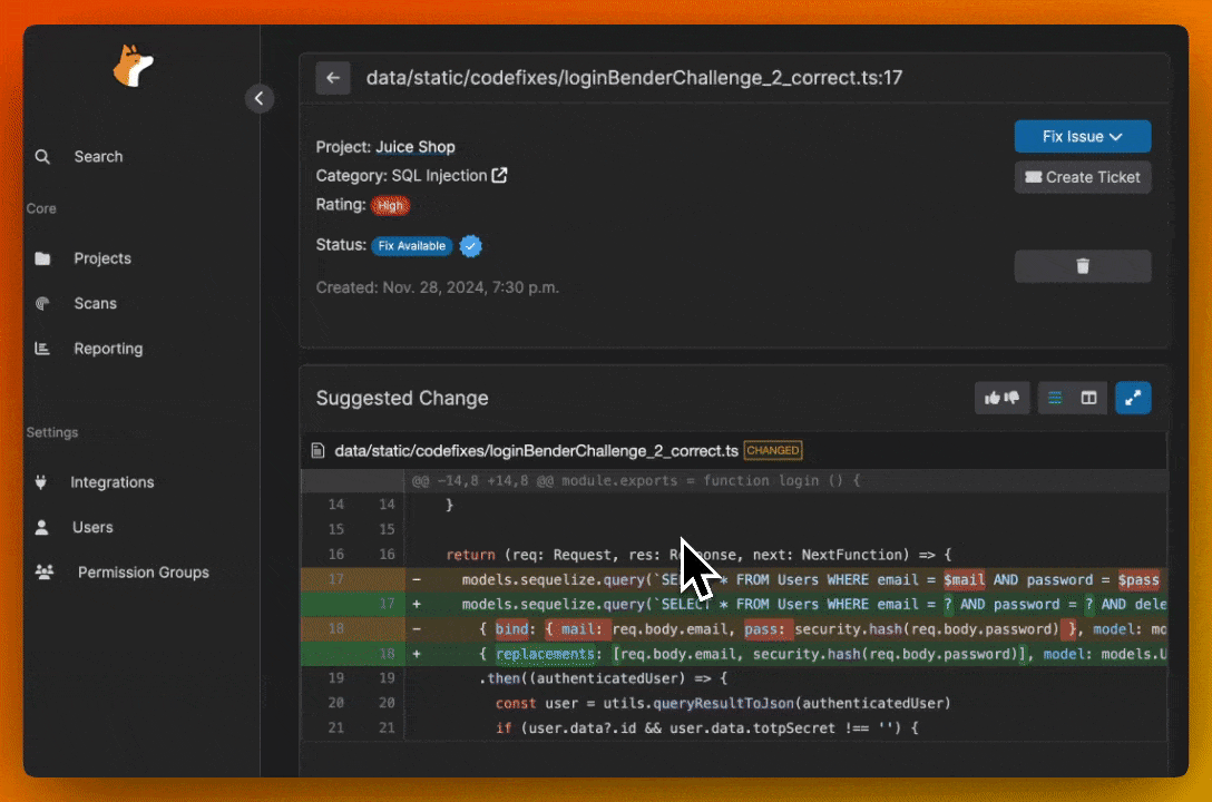 For teams that rely on JIRA for issue tracking and project management, our JIRA integration is a game-changer. Corgea can automatically create JIRA tickets for detected vulnerabilities, complete with detailed information and suggested fixes. This streamlines the remediation process and ensures that security issues are properly tracked and addressed within your existing workflows.
