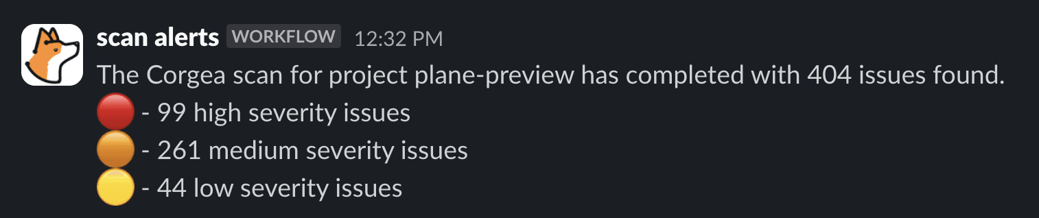 Stay informed about new vulnerabilities and fixes directly in your Slack channels. With the Slack integration, you can receive real-time notifications whenever a scan is complete with an entire scan report. This integration ensures that your team stays up-to-date and can quickly address any security concerns. Additionally, Slack customers can use Slack Workflows to drive further automation.